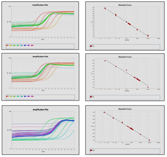 (2)?????? 本公司構(gòu)建了多種微生物的功能基因(如:nirS、nirK以及nosZ等)質(zhì)粒標(biāo)準(zhǔn)品,這些標(biāo)準(zhǔn)品擴(kuò)增效率高,標(biāo)準(zhǔn)曲線相關(guān)系數(shù)(R2)均在0.98以上。