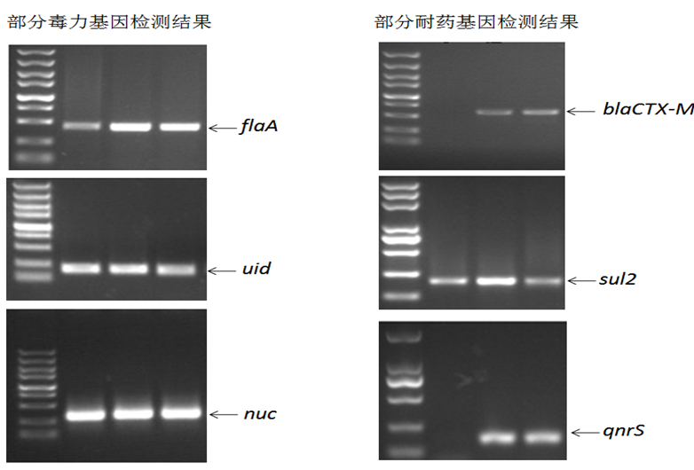 (2)本公司擁有多種測序過的ATCC菌株的毒力基因及耐藥基因基因組DNA標(biāo)準(zhǔn)品,能夠?qū)崿F(xiàn)對毒力基因以及耐藥基因的特異性分子檢測。